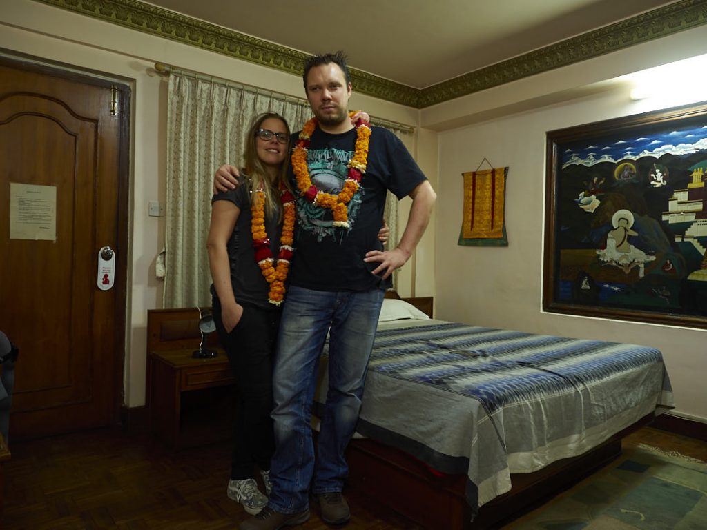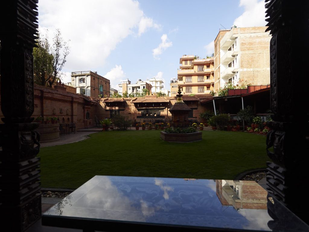 Wir wohnten ein paar Tage im International Guest House im Ortsteil Thamel. Unser Doppelzimmer war sauber und völlig okay. Einziges Manko ist die Hellhörigkeit. Kein Wunder, denn die Wand zum Nebenmann bestand aus einem riesigen Gemälde auf einer gefühlt nur einen Millimeter dünnen Holzplatte. Etwas skurril, aber wir fühlten uns trotzdem wohl. Die Leute waren supernett, vor allem der schöne Garten im Innenhof hatte es uns angetan. Von hier aus starteten wir unsere Touren zu den Sehenswürdigkeiten.