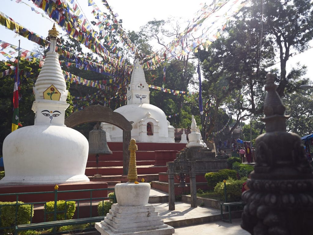 Seinen Zweitnamen „Monkey Temple“ hat Swayambhunath von den – man kann es sich schon denken – unzähligen possierlichen Äffchen, die das gesamte Gelände belagern. Im Vergleich zu den freilebenden Affen anderer Städte sind diese aber zurückhaltender. Sie haben sogar einen eigenen Swimmingpool. Wie angenehm.