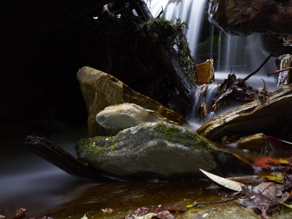 Eine ganze Zeit sind wir an einem kleinen Bachfluss (Eigenkreation= zu groß für einen Bach, zu klein für einen Fluss) entlanggegangen mit kleinen Wasserfällen und moosigen Anschnitten.
