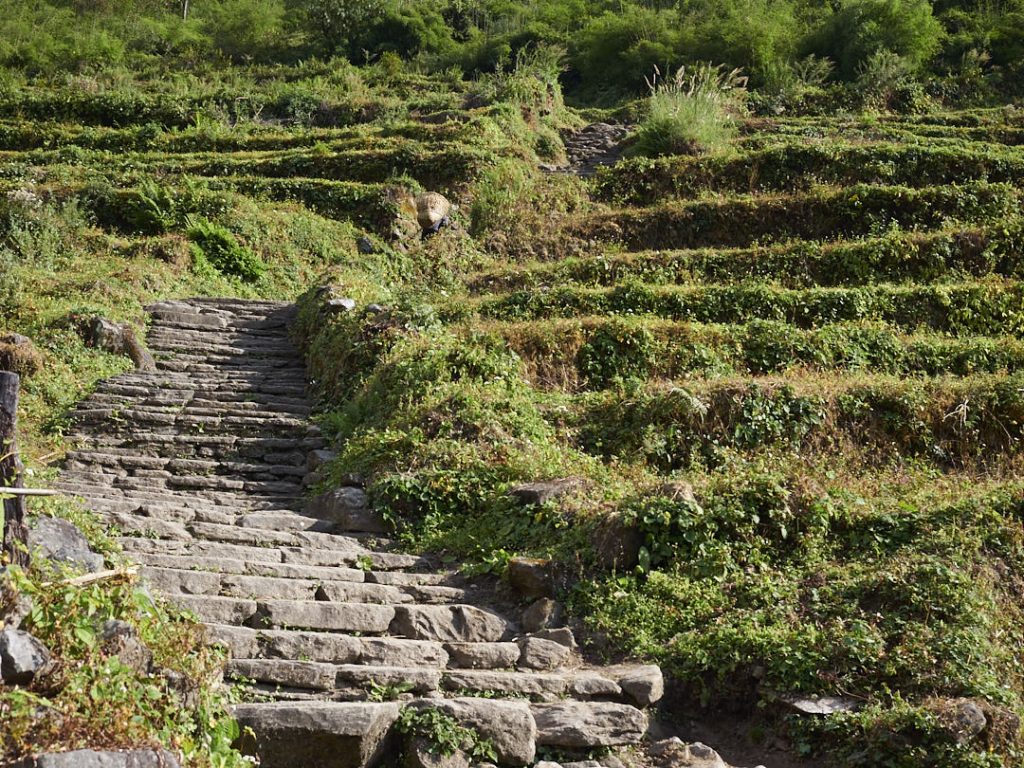 Es heißt, dass nach Chomrong der eigentliche Aufstieg beginnt. Wir sind sehr gespannt, wie es am Anapurna Base Camp ist. Heute sind wir wieder durch verwunschenen Wald unterwegs. Es ist ein Gefühl, wie im Märchen. Oder wie Alice im Wunderland. Fehlt nur noch der Weiße Hase. „Oh dear, oh dear, I shall be too late!“