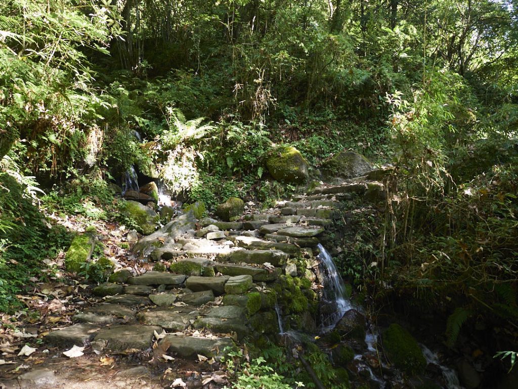 Der Morgen kam dann doch etwas früher als gedacht und wir kommen wieder erst eine Stunde später los als geplant. Natürlich gab es auch heute Stufen, doch lange nicht so viele wie vorher. Der Weg war total schön. Er führte durch einen dicht bewachsenen Urwald mit Eichen, Pinien, Farnen und später auch Bambus.