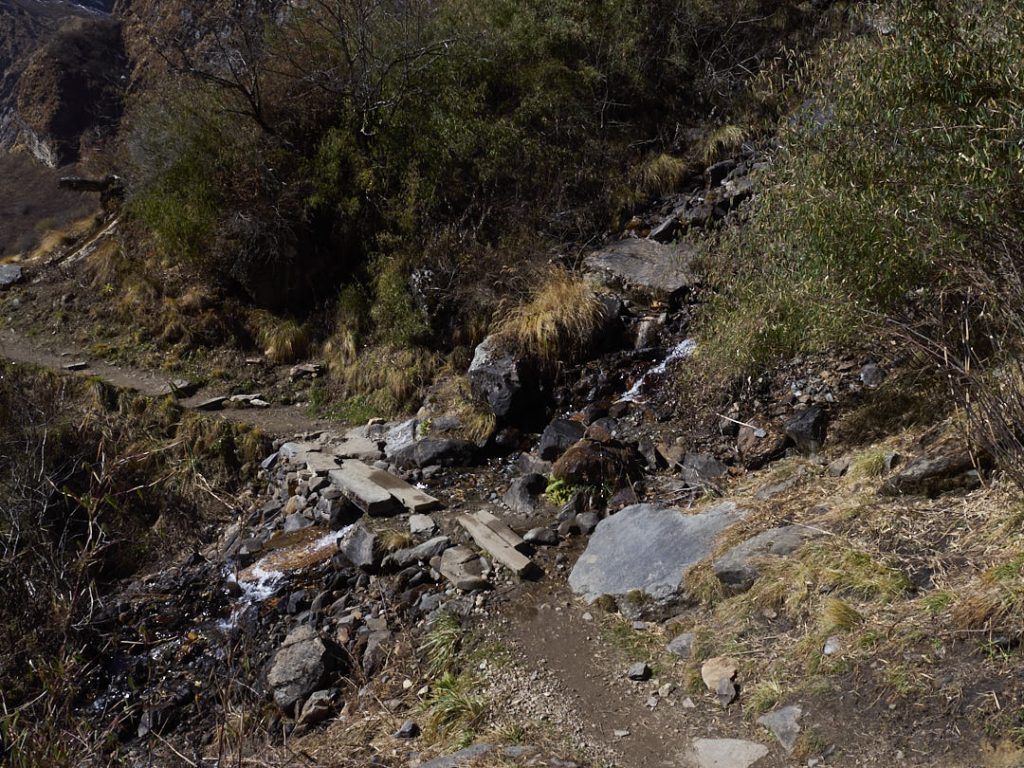 Zum Abstieg haben wir denselben weg genommen wie zum Annapurna Basecamp aaaber mit einer kleinen, zu empfehlenden Änderung: Ein Bad in den heißen Quellen von Jhinu.