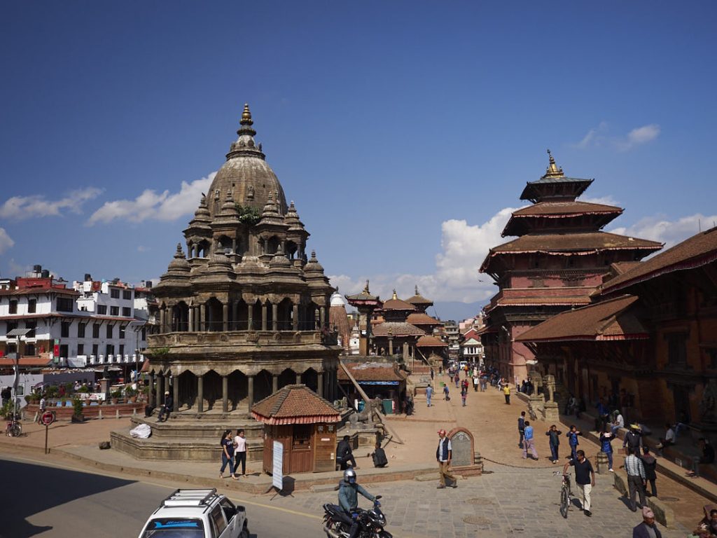 Patan oder Lalitpur (auf Sanskrit: „Stadt der Schönheit“) liegt wie Bhaktapur im Kathmandutal. Es ist ca. 5 km von Kathmandu entfernt und super mit dem Taxi zu erreichen. Patan ist die dritte Königsstadt im Bunde, von daher gibt es auch hier wahnsinnig viele Tempel. Die meisten sind buddhistisch, denn früher war der Ort das Zentrum der buddhistischen Lehre.